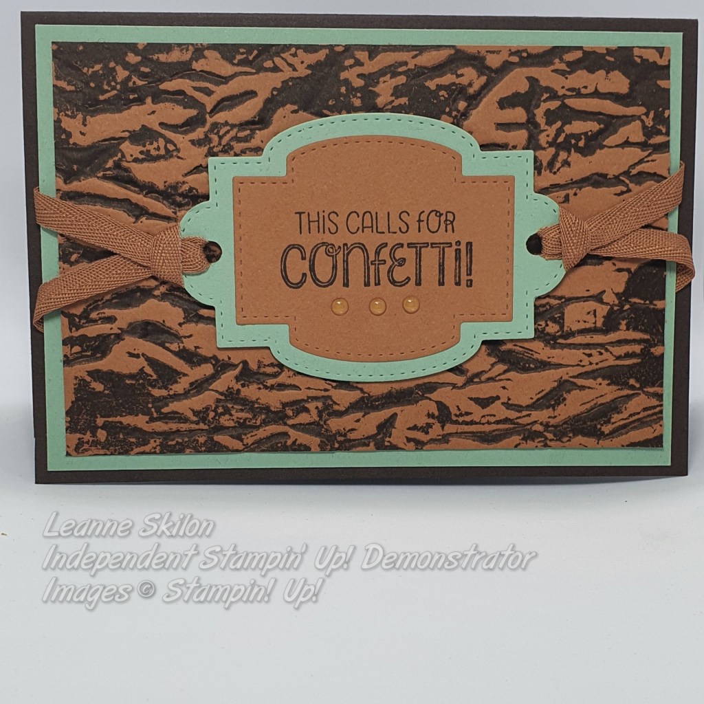 Hello and happy Monday. I hope you all had a great weekend !!! I got the chance to catch up with the girls for a LONG overdue crafty session. Here is the card I created. I used Early Espresso ink on the Old World Paper 3D embossing folder to create this interesting layer.