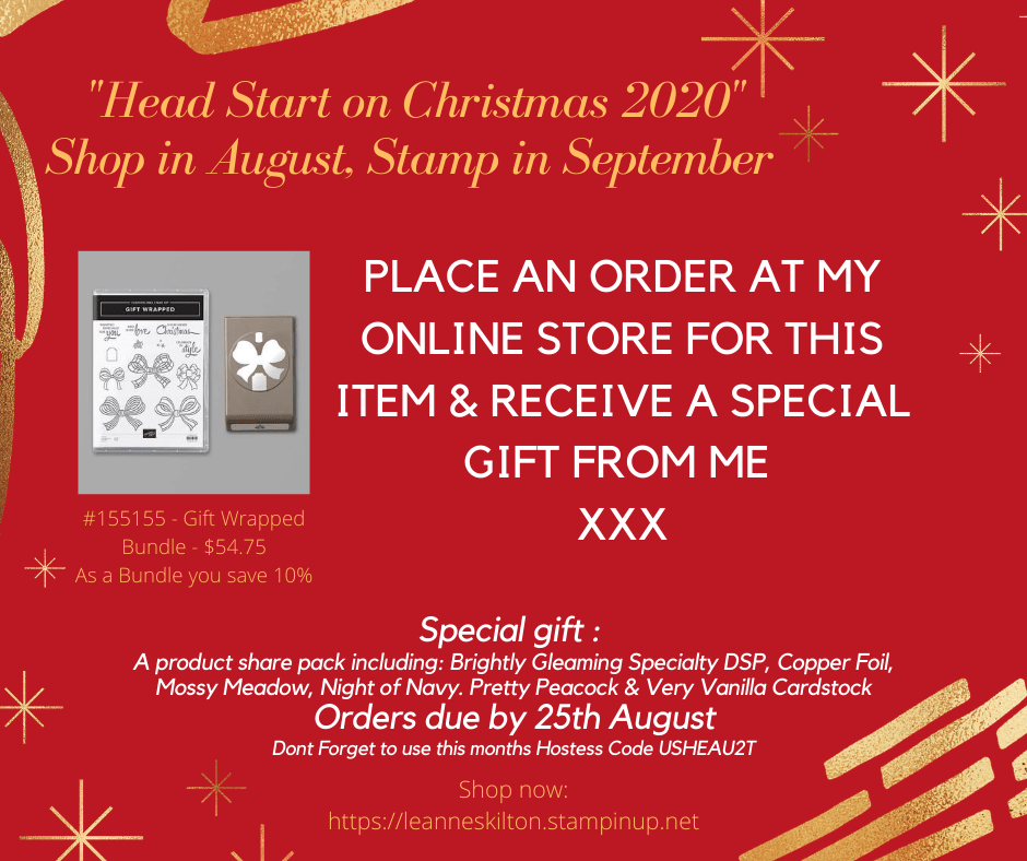 As of today 4th August, I will be offering some freebies, if you purchase certain products at my online store. (Please see images below for more details). And during September I will be sharing heaps of awesome Christmas projects for inspiration, as I get a “Head Start on Christmas 2020”. I would love for you to join.