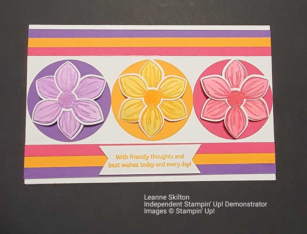 Hello everyone. I hope that you all had a great weekend. Today’s card is a bright way to start the week. I love these colours together Gorgeous Grape, Melon Mambo and Mango Melody xxx