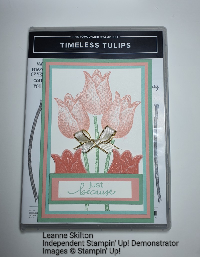 Hello everyone. Today’s card features the refreshing Timeless Tulips stamp set, along with the oh so versatile Lovely You stamp set. It is a very subtle card using a Blushing Bride, Pool Party, and Mint macaroon colour combo. Check out the supply list below, and please contact me if you have any questions xxx