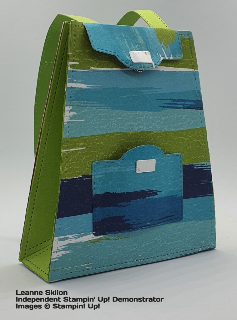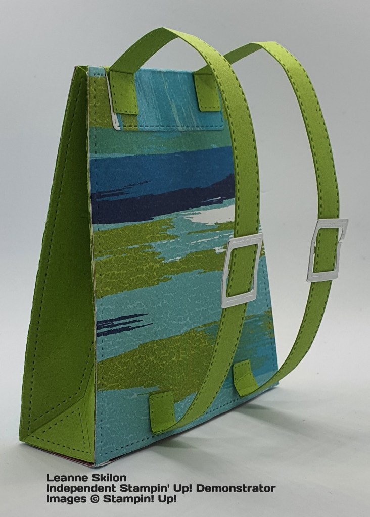Today’s project is “cuteness OVERLOAD” This little backpack was created using the Artistry Bloom Designer Series Paper, Granny Apple Green Cardstock and some Silver Foil for the accents.