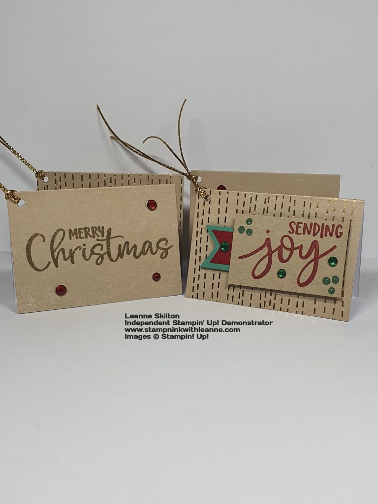 Continuing on from Monday and Wednesday, using the colour combo from the Joy To The World Paper Pumpkin I made these little Christmas cards, or with a whole punched on the corner and a little gold thread added, they can be gift tags.
